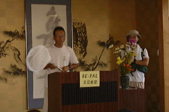 今森氏とBE-PAL編集長と地元世話人のH氏の『里山トークセッション』と銘打った話が始まる。現在の農業の現状と環境保全、理想と現実のギャップ。などなど、複雑に絡み合った”今”が熱く語られた。いつまでもこの自然を残して欲しいと思う、われわれ外からの人間と、残したいけれど生活ためには残していくのがとても難しい地元の方。棚田のオーナー制度などいろいろな意見があるらしいが、今すぐ結論が出る問題ではない。 |