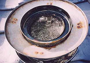 | 5.上からのアタックでこれだけの量 | 6.室内はシングルなのでついつい燃焼温度を低くしていたようだ。タールの量が多い。 | ||