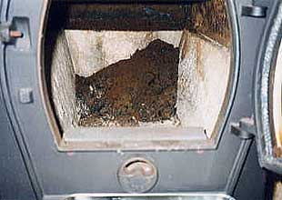 そうこうするうちに、しじみが上がってきた。案の定、自分もしたいと言い出す。別にダメと言う理由もなく、ロープを渡す。やがて一番下まで届いた手応えがあり、しじみが確認して取り合えず上部からの掃除は終了。次は室内に移動して、ストーブから天井までの煙突を外す。それを庭に持っていき、今度は柔らかめのブラシでごしごし・・。 最後は本体の掃除。ガラスはシーズン中、毎朝灰を使って掃除をしているのできれいだが中の灰の汚れはうまく取り去ることが出来ない。仕方がない、掃除機で吸うか・・しじみが何か叫んでいるが、気にしない。お掃除なのだからちゃんとしないと。 この日出た煤の量は、どんぶり約5杯ぐらいだろうか。結構大きなタールの固まりもいくつかあって、コレが煙突火災の原因となったかもしれないと思うと、今日の煙突掃除は大成功と思うのであった。 |